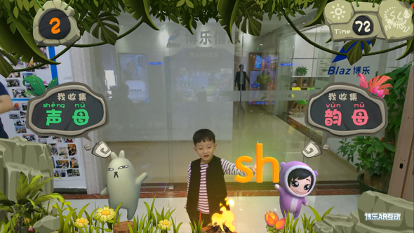 拼音系列之--声韵小神童:“小粉”“无聊兔”萌宠助教齐上阵,答对还可与萌宠助教亲密互动;拼音版--小小探险家,在草原、森林等场景中,认动物、学拼音,了解动物的习性;拼音系列之--寻宝智多星,小朋友站在屏前,化身虚拟小人,通过控制小人站在屏幕出现的物品的正确拼音上而得分,并且掉入宝箱,开启下一关。