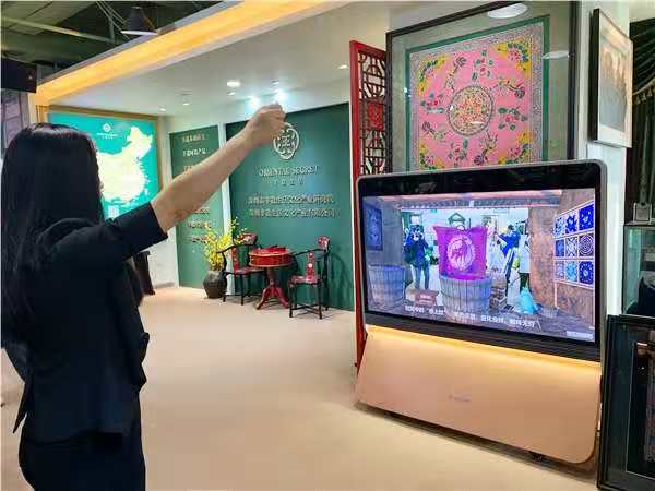 11月18日上午,由深圳市委宣传部组织的11家媒体记者到访福田保税区非遗生活体验厅,感受中国最优秀的非遗文化产品及AR/VR数字非遗创新互动。深圳晶报记者表示“体验者可以在这里通过AR互动,亲身体验扎染传统技艺,让一张张美丽的布艺在自己的手作中焕发光彩;在语音指引下体会传统端午节日文化,将香囊挂在腰间,把艾草插上门楣。”数字化AR科技赋予非遗文化新的生命力。