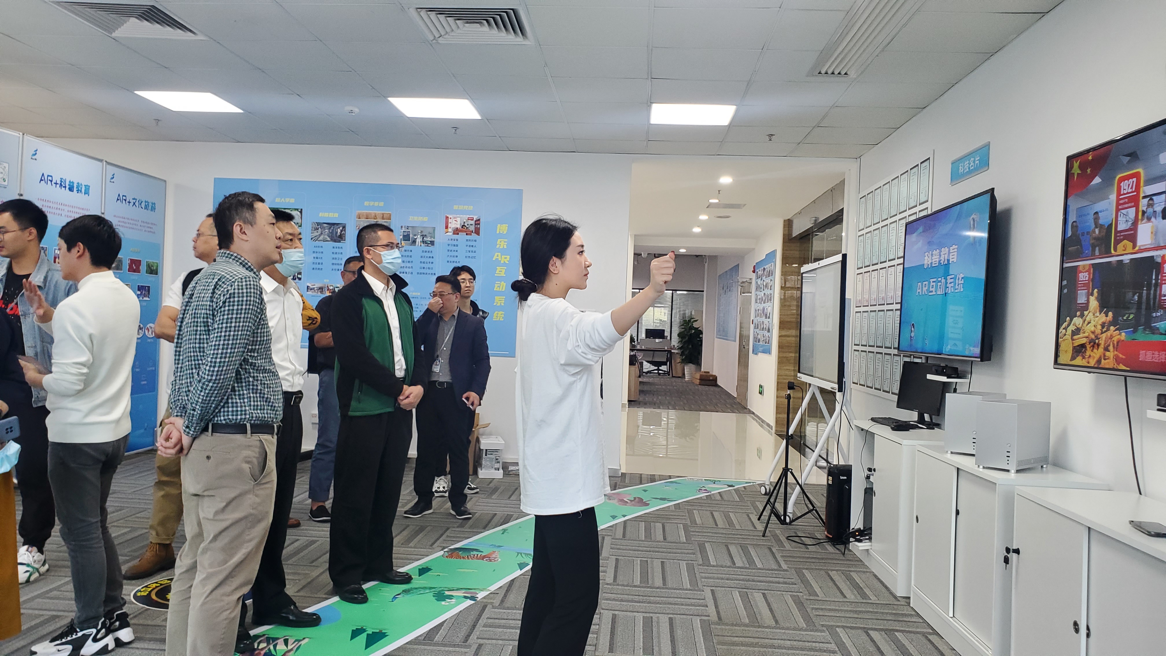 李总一行先后体验了博乐信息智慧党建、卫生防疫、智慧金融等六大系列产品,尤其是在建党100周年之际,各政府部门、街道办、社区对智慧党建的需求不断加大,尤其是结合增强现实、人脸识别、骨骼追踪的无接触式AR互动体验,突破传统党建系统单向观看的模式,将资讯、党务、学习、互动等模块结合AR增强现实技术,打造可视化、智能化互动体验,无接触式隔空操作互动更符合疫情常态化下卫生防疫要求。