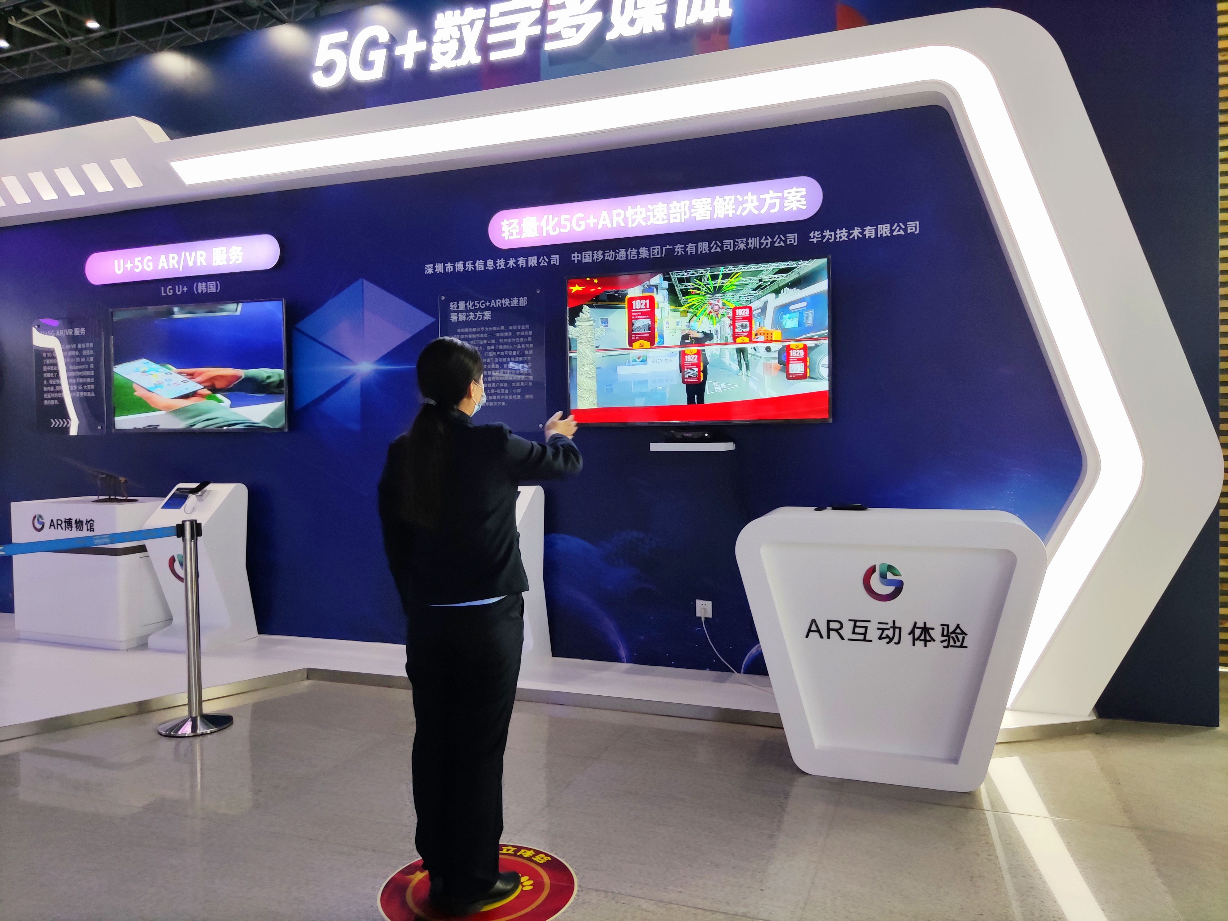 3月8日,由深圳市发展改革委员会主办的全球5G创新应用场景展在市民中心工业展览馆隆重开幕,中国移动、华为云核心网、博乐信息共同打造的轻量化5G+AR快速部署方案现场对外体验,展示5G+AR场景化应用的最佳方案。