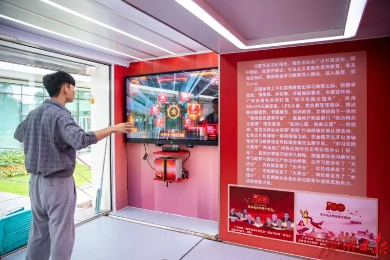“红”动广州的党史学习实践大篷车,凝聚起基层蓬勃向上的红色力量,具有可移动、可变形、可伸缩、可升降的特点和优势,可快速触达广州基层各个角落,全天候、全城域、全覆盖开展党员群众党史学习惠民服务。