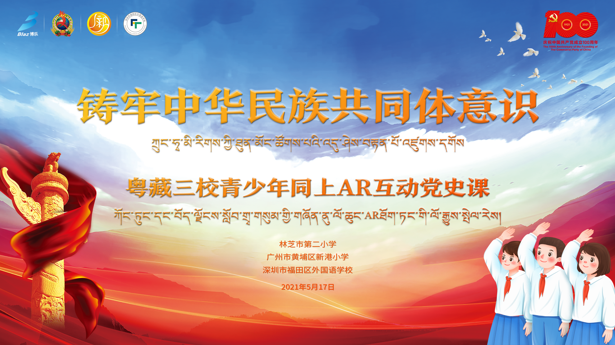 5月17日,由博乐信息结合公司智慧党建AR互动产品,打造的“铸牢中华民族共同体意识”青少年党史学习互动课程在深圳市福田区外国语学校、广州市黄埔区新港小学、林芝市第二小学三校共同开讲,课程不仅内容丰富多样,包含红船精神、党的诞生、四史学习等,且形式新颖有趣,结合创意AR互动,打造全新互动体验未来课堂,引发三校学生的积极参与。