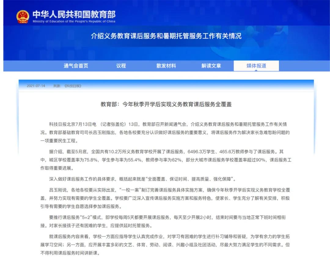 作为“课后服务”直接受益人
