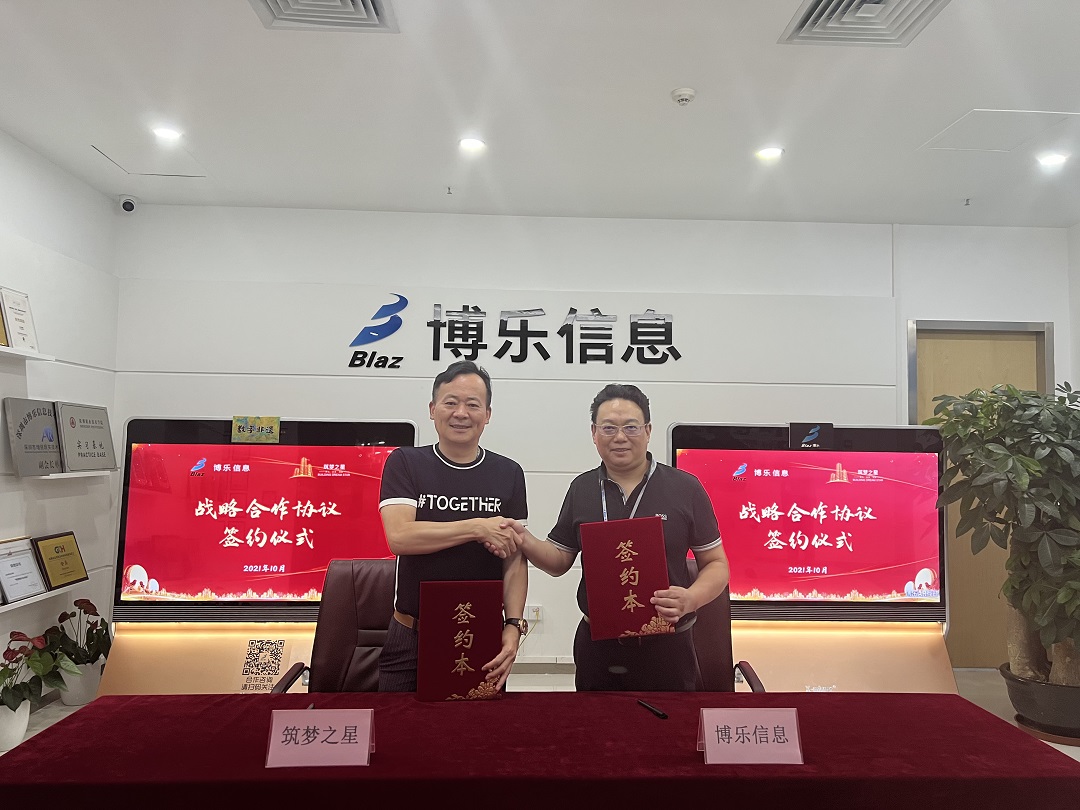 2021年10月28日,博乐信息与深圳市筑梦之星科技有限公司签署战略合作,双方将强强联手,结合博乐信息XR领域产品及技术优势、各地众创空间市场资源优势携手共建“中华优秀传统文化数字交互研学基地”。数字科技赋能文化传承,增强每一个青少年的文化自信与民族自豪感。