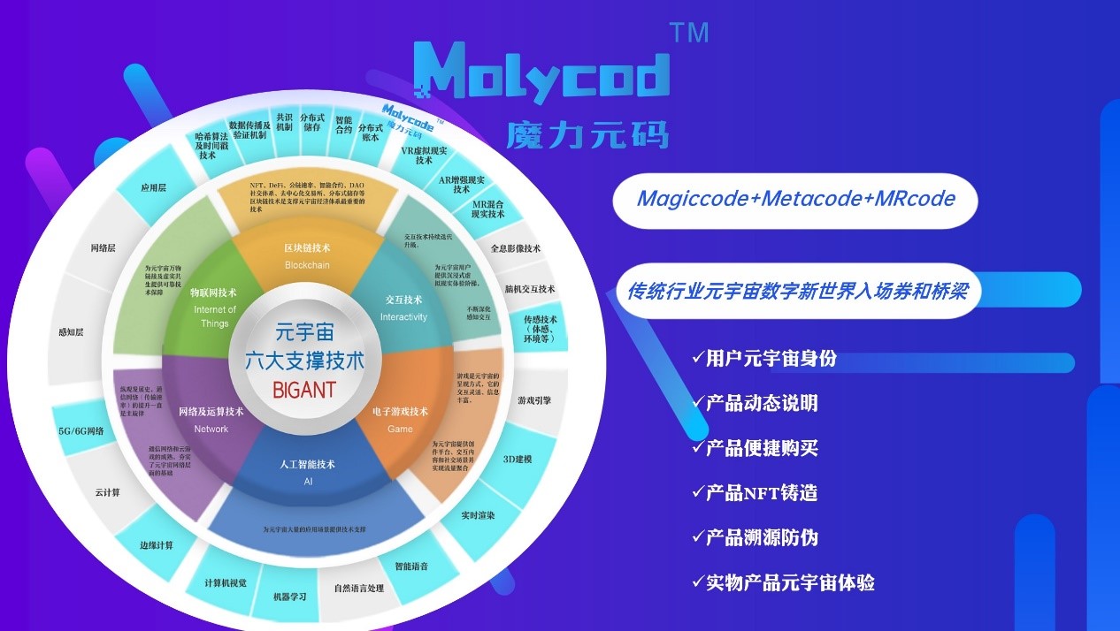 如何用数字经济的思路赋能传统实业,帮助传统行业换道升维,快速降低进入元宇宙平行世界的门槛。通过MolyCode魔力元码把各行各业的普通消费品变成文化收藏品、金融投资品和科技时尚品。