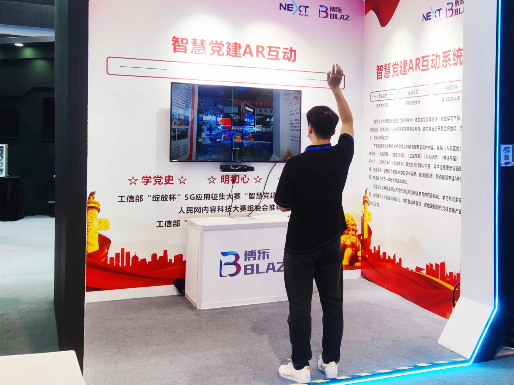 在新一代展区,博乐信息的“智慧党建AR互动系统”格外引人注目,搭配元宇宙视觉交互应用MR Share,参展观众还可以有更广泛的视角感受,在现场可以在虚拟空间的党建文化展厅中,学党史明初心知使命。