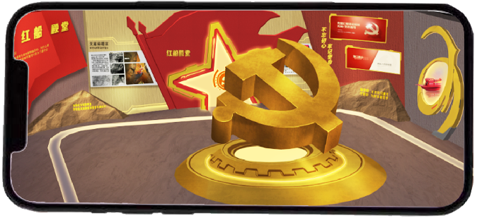 红船殿堂沉浸营造多元体验交互,将虚拟场景与现实空间的叠加融合,触碰场景可开启数字内容创新展示,还可以实现“单一空间多场景切换”,探索更多红色文化的互动体验方式。
