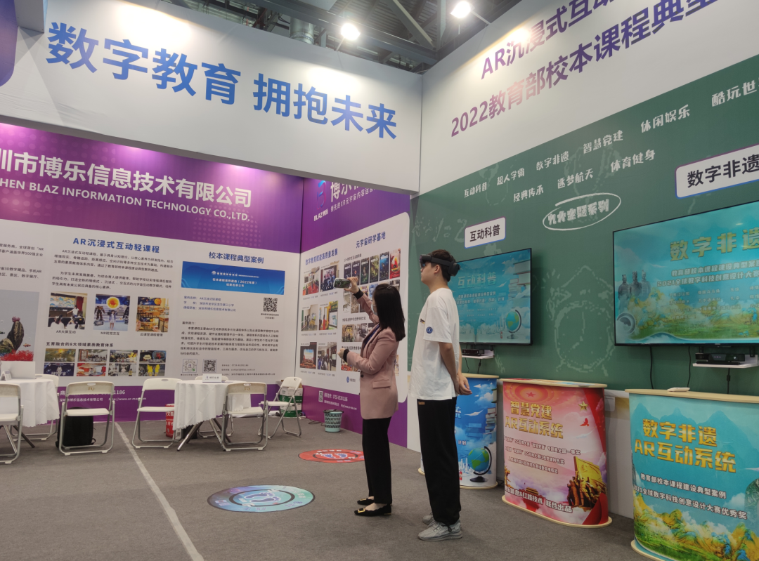 本届展会以“数字赋能教育,创新引领未来”为主题,博乐信息作为企业级数字教育科技创新引领者,带来了以“AR沉浸式互动轻课程”为核心的多项数字科技产品,精彩亮相教育装备展。