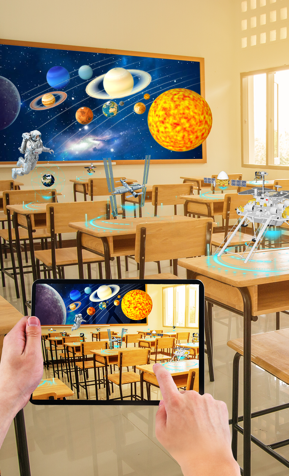 以“AR沉浸式互动轻课程”为核心的沉浸式教学新模式,打破了原有教育面临的边际成本高、教育资源稀缺的束缚,聚合了创新性的数字教学资源,极大地便利了教师关于优秀传统文化、青少年国防教育、党史学习等内容的授课流程,助力教师高效教学。