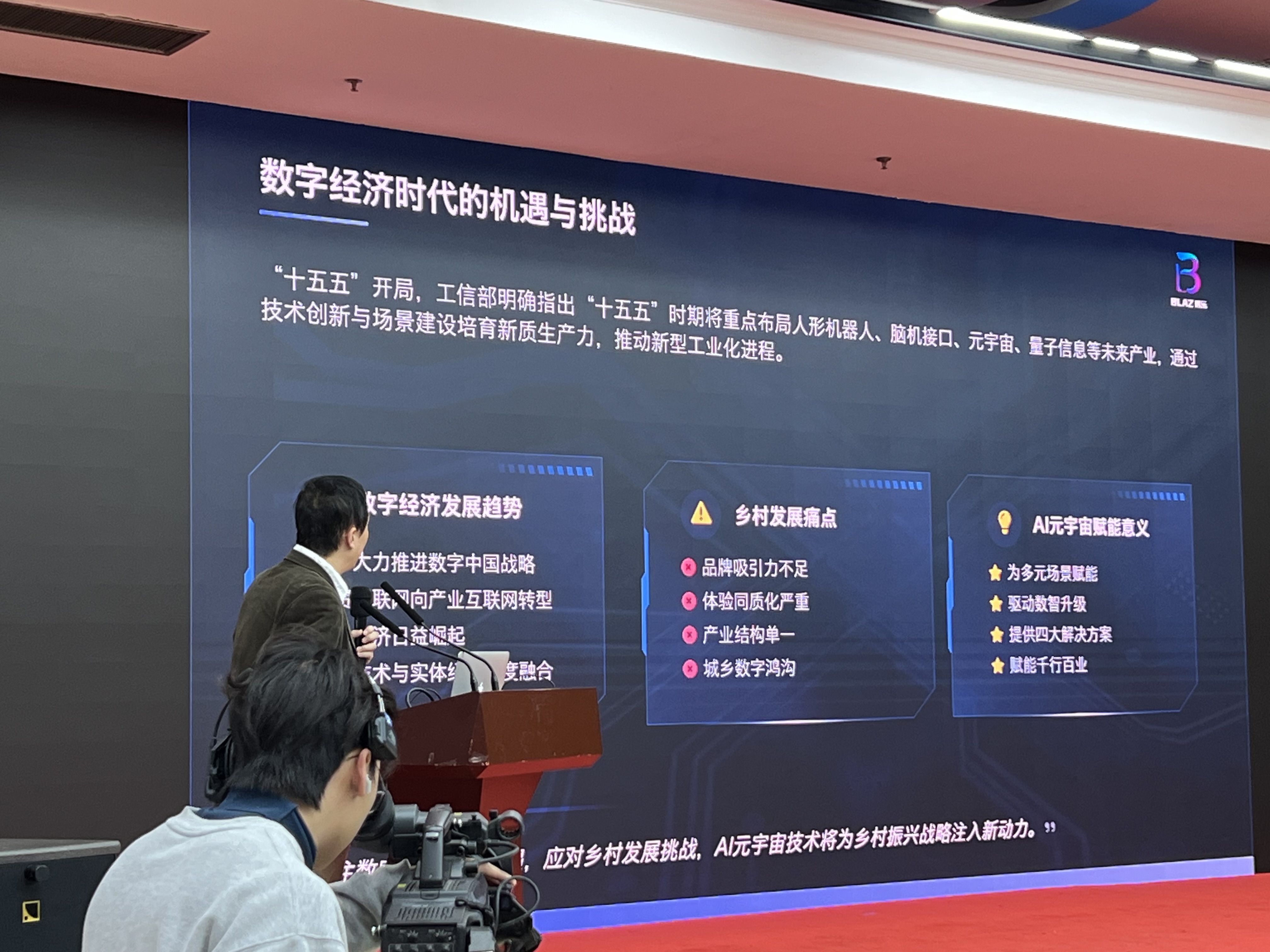 博乐信息副总经理李恩祥在活动中正式发布了“元宇宙发布厅”产品,该产品是基于人工智能与混合现实技术的标准化、模块化数字空间解决方案,助力企业实现从传统展示到沉浸叙事的战略升级。无需改造实体空间,通过MR设备或智能终端,即可在既有物理场景之上,构建一个虚实融合、自由交互、实时响应的沉浸式场域,发布厅整合了企业文化、发展历程、产品矩阵、客户案例与资质荣誉等功能模块,支持内容的瞬时切换与场景重构,达成“一厅千面”的展示效果,大幅提升空间利用与内容迭代效率。可广泛应用于企业空间升级、全球展会出征、重要活动发布等场景。