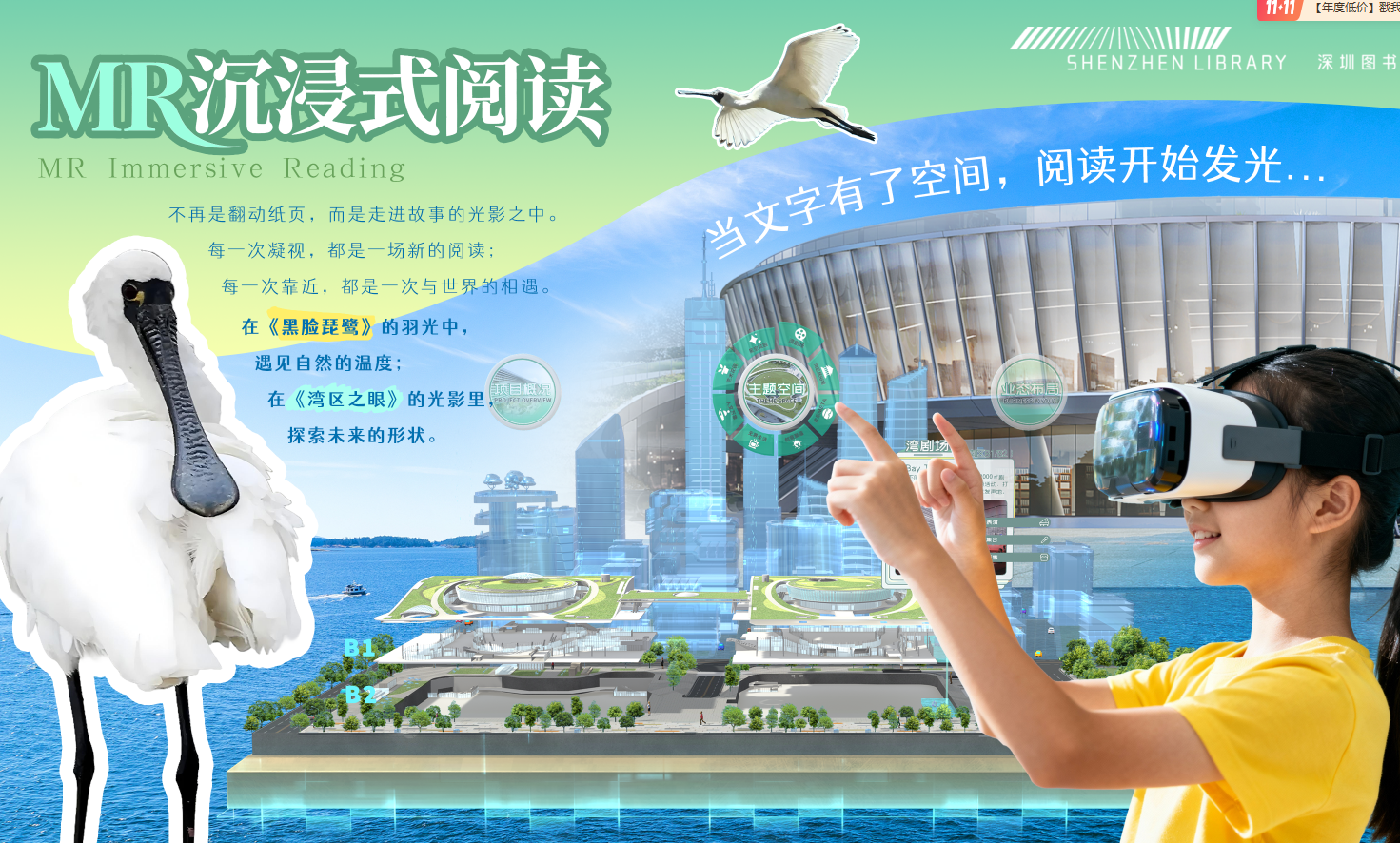 深圳图书馆此次MR沉浸式阅读项目的启动,就是探索将混合现实技术与城市文化记忆深度绑定,开创“阅读+科技”的全新文化体验模式。
