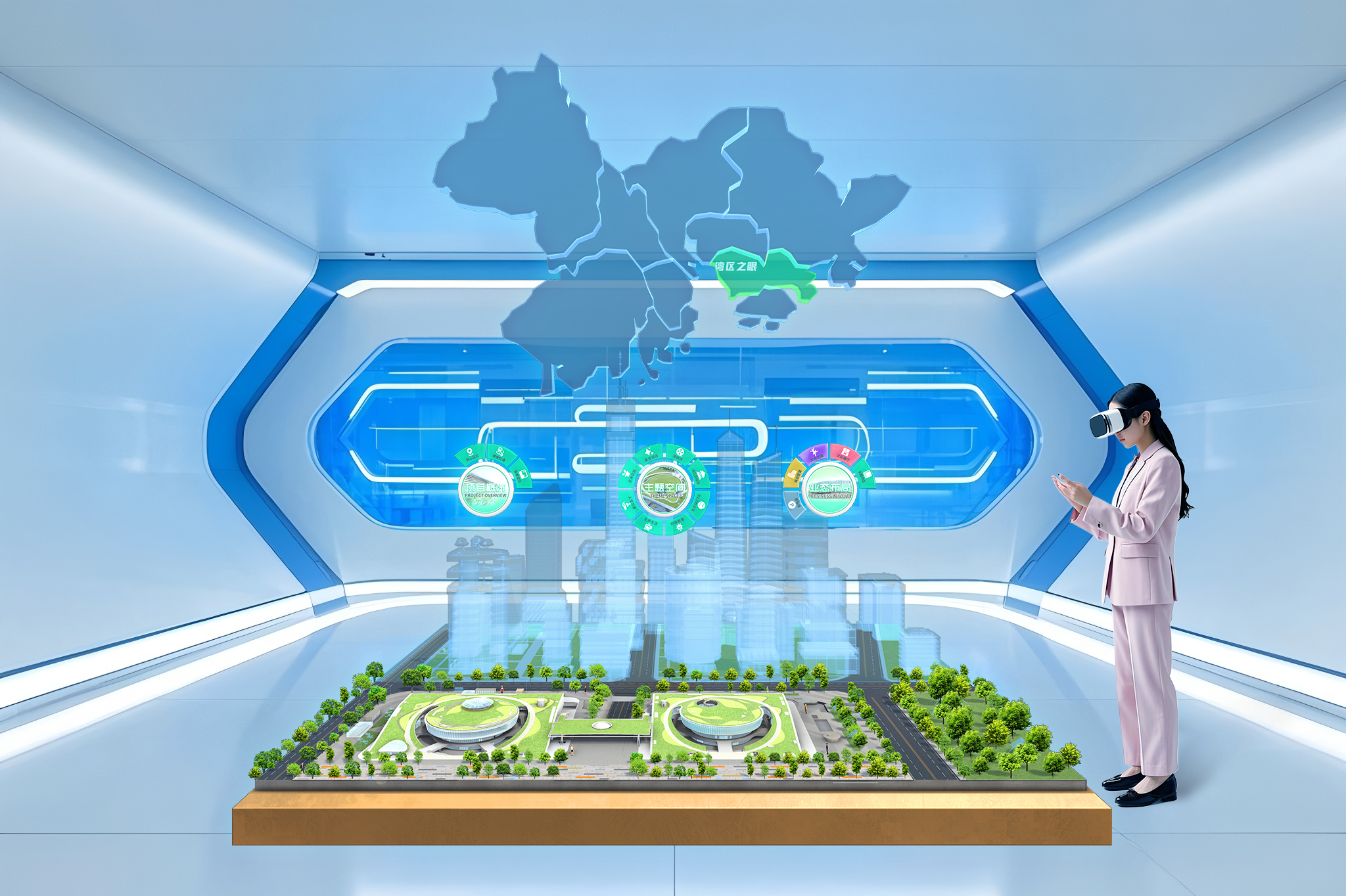 作为9月底开始运营的文化综合体,“湾区之眼”象征着深圳湾区文化魅力与现代文明风采的使命。MR沉浸式交互项目通过数字孪生、混合现实(MR)技术,将“湾区之眼”的实体空间进行数字地图重构,八大主题空间浓缩于图书馆中庭。