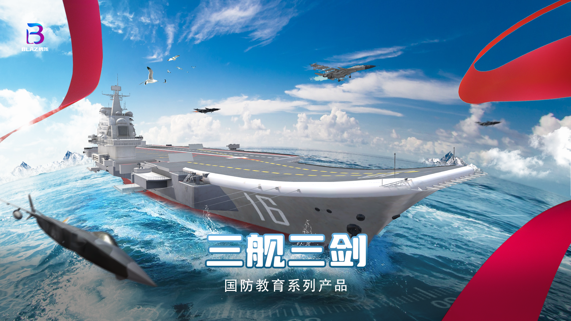 《三舰三剑》:学生在教室中就可以通过MR技术“登上”辽宁舰、山东舰、福建舰,模拟指挥舰载机起降、舰炮射击等任务。