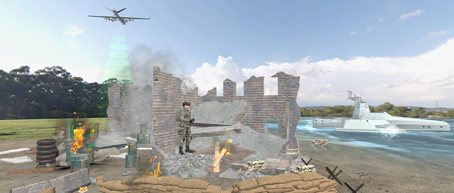 MR协同作战:多人协作操作虚拟装备,完成战术目标;