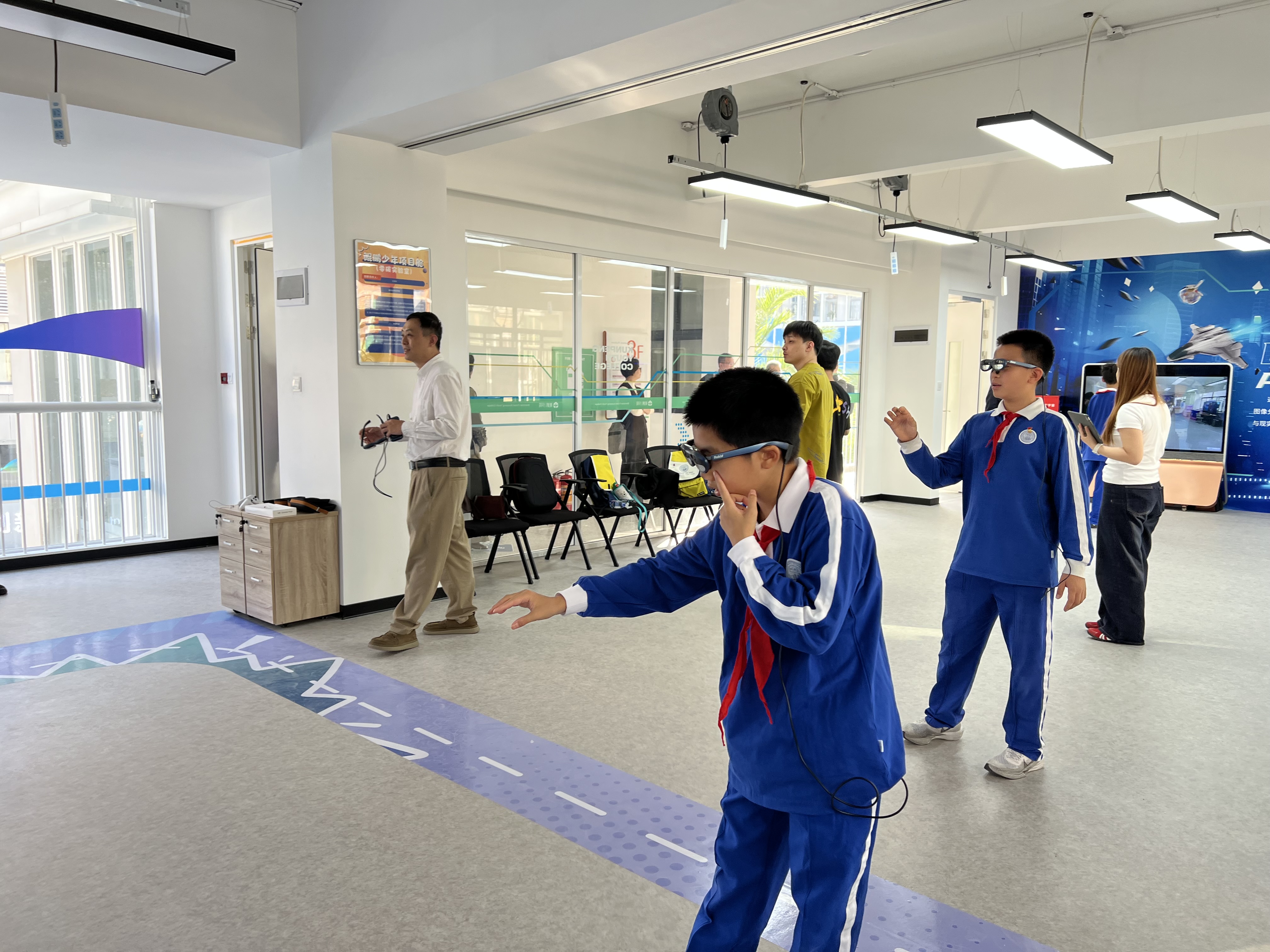 ①MR空间交互体验:涵盖国防教育、数字非遗、航天探索等十余个主题,学生可将自己创作的场景带入MR空间,完成从构思到沉浸的闭环。